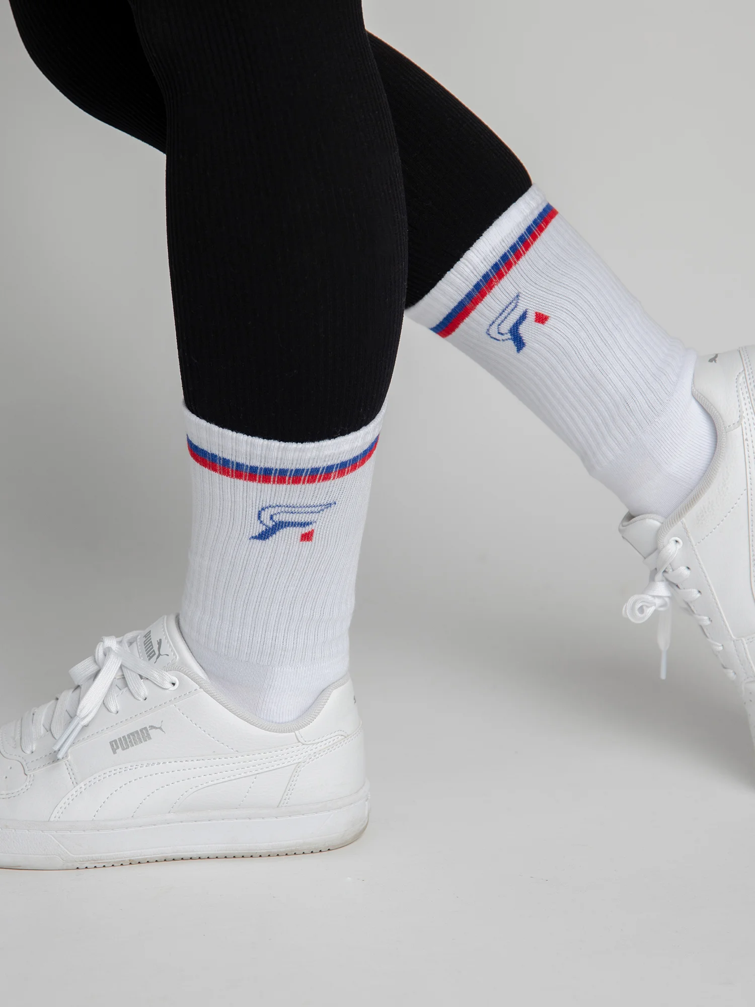 Klares, sportliches Design trifft auf markante Details: Die Socken kombinieren einen weißen Grundton mit blauen und roten Streifen sowie einem eingestickten Я Logo auf dem Schaft ein echter Hingucker. Der elastische Bund und die hochwertige Materialmischung sorgen für einen sicheren Sitz ohne Druck. Ob im Alltag, in der Freizeit oder zum sportlichen Outfit – diese Socken bleiben bequem und stilvoll, den ganzen Tag über.